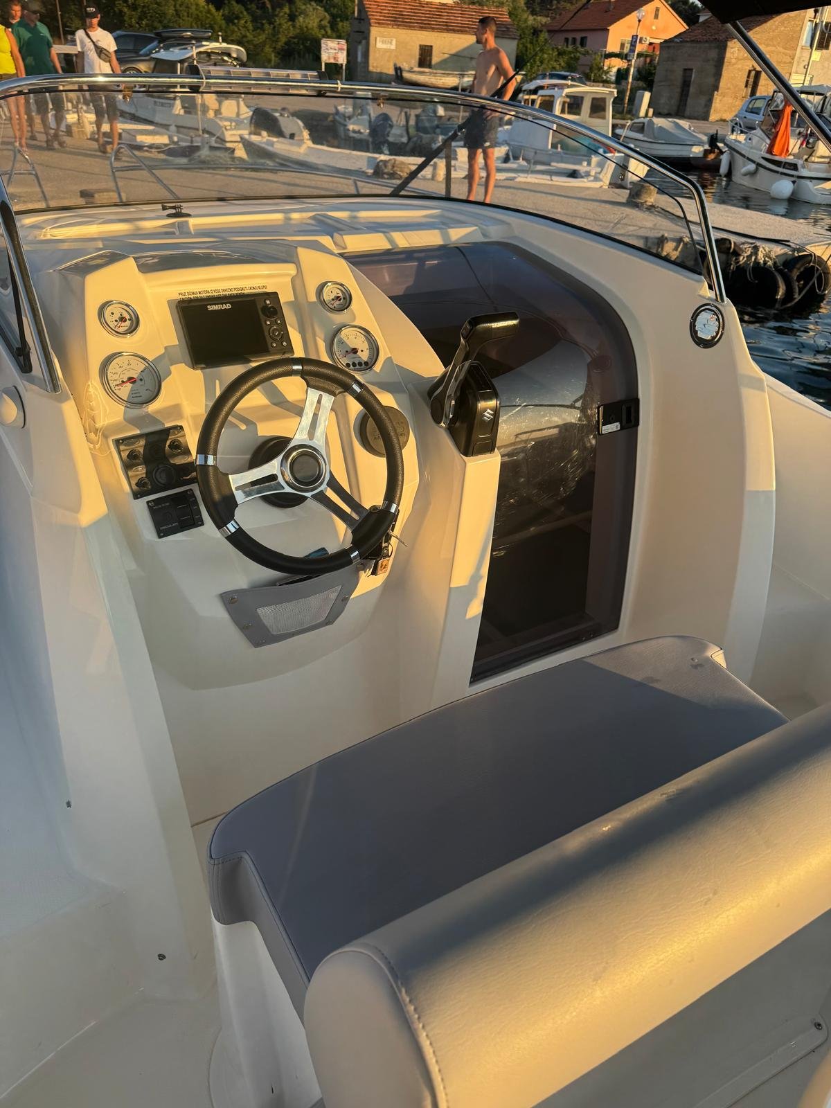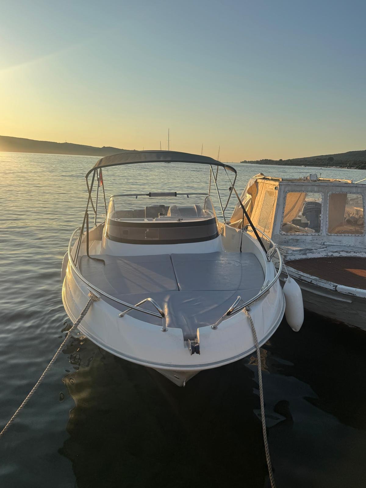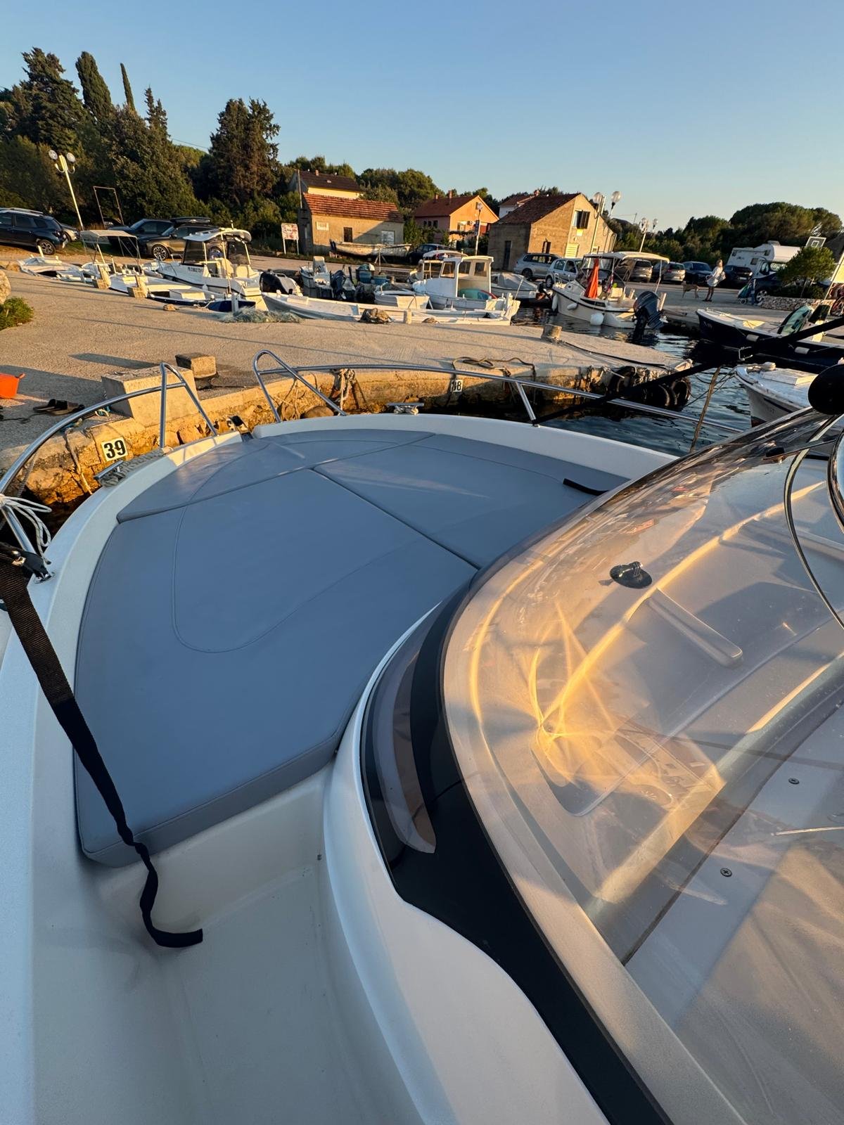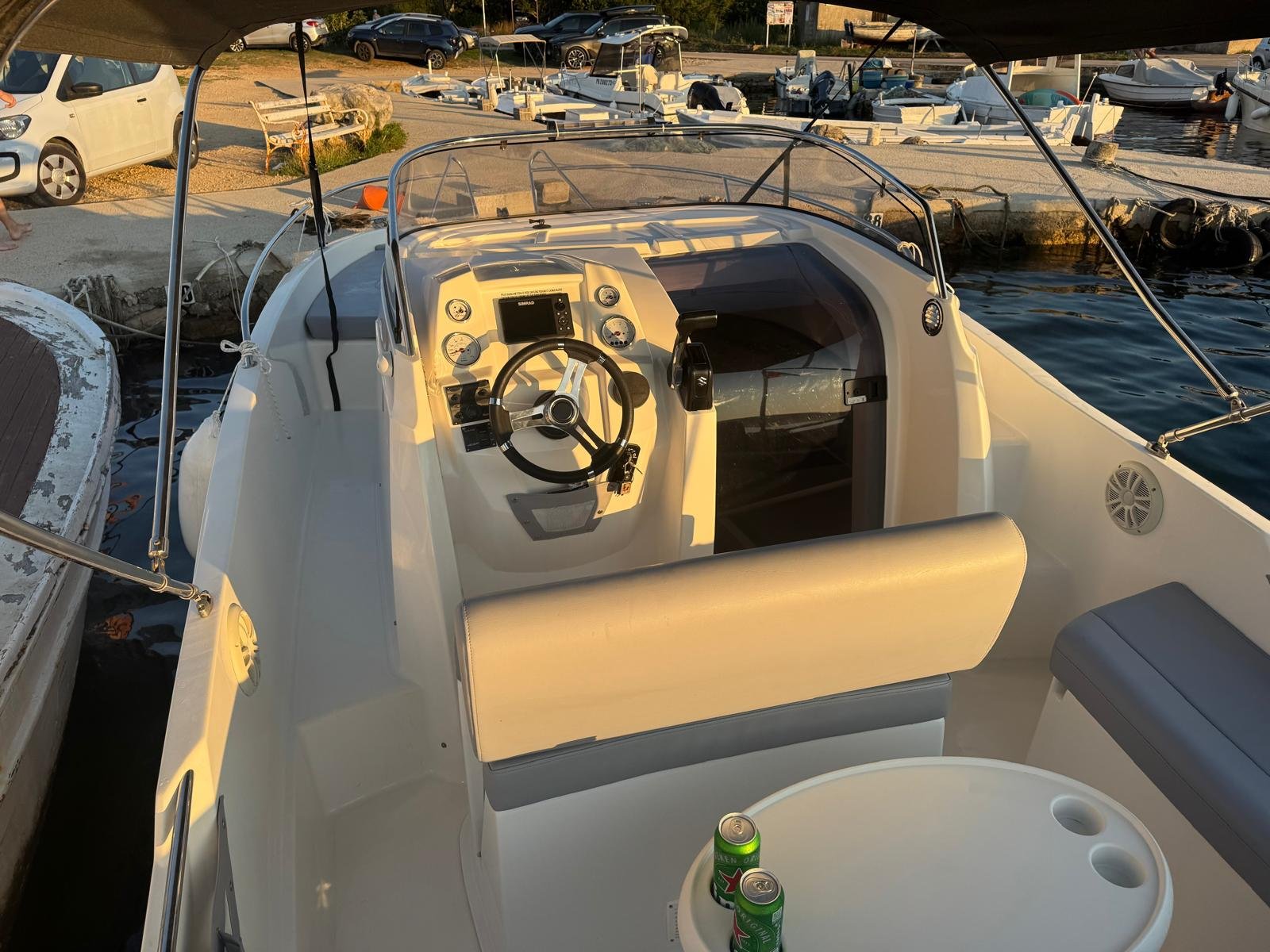 This 2023 Prince 625 Sundeck is suitable for 8 people. It is docked in Muline marina, Croatia. The motorboat Prince 625 Sundeck is equipped with a 175hp engine. When at anchor or in the marina, a bimini proves a great benefit. Cruising with this motorboat is great fun as it is equipped with an outside speakers and an audio system. This motorboat is operated by the charter company Muline Rental.
