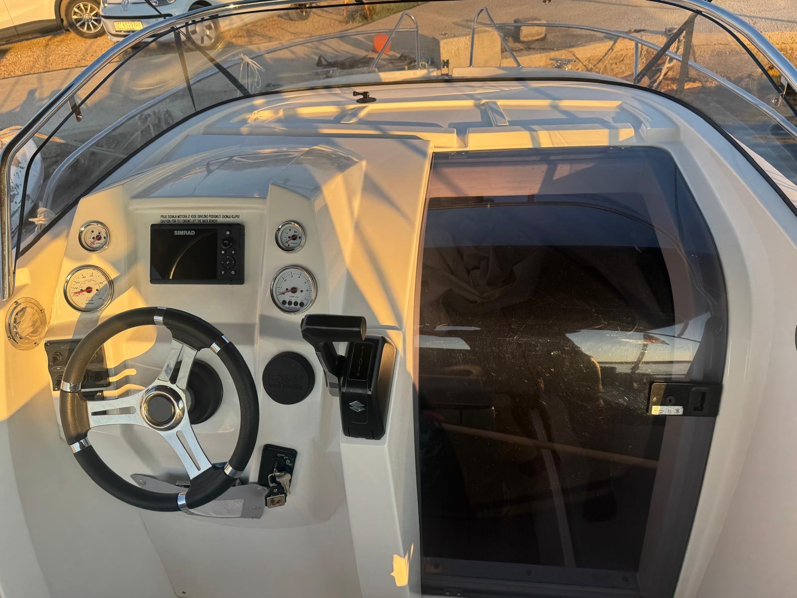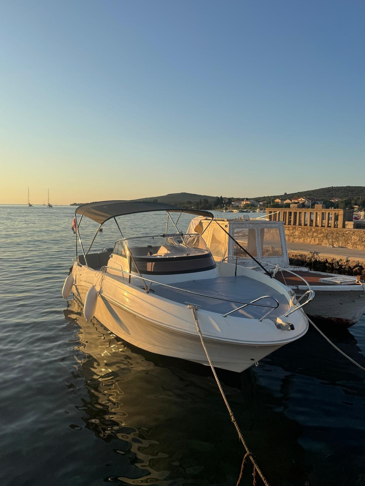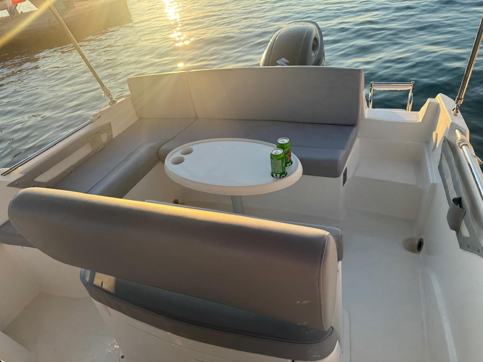 This 2023 Prince 625 Sundeck is suitable for 8 people. It is docked in Muline marina, Croatia. The motorboat Prince 625 Sundeck is equipped with a 175hp engine. When at anchor or in the marina, a bimini proves a great benefit. Cruising with this motorboat is great fun as it is equipped with an outside speakers and an audio system. This motorboat is operated by the charter company Muline Rental.